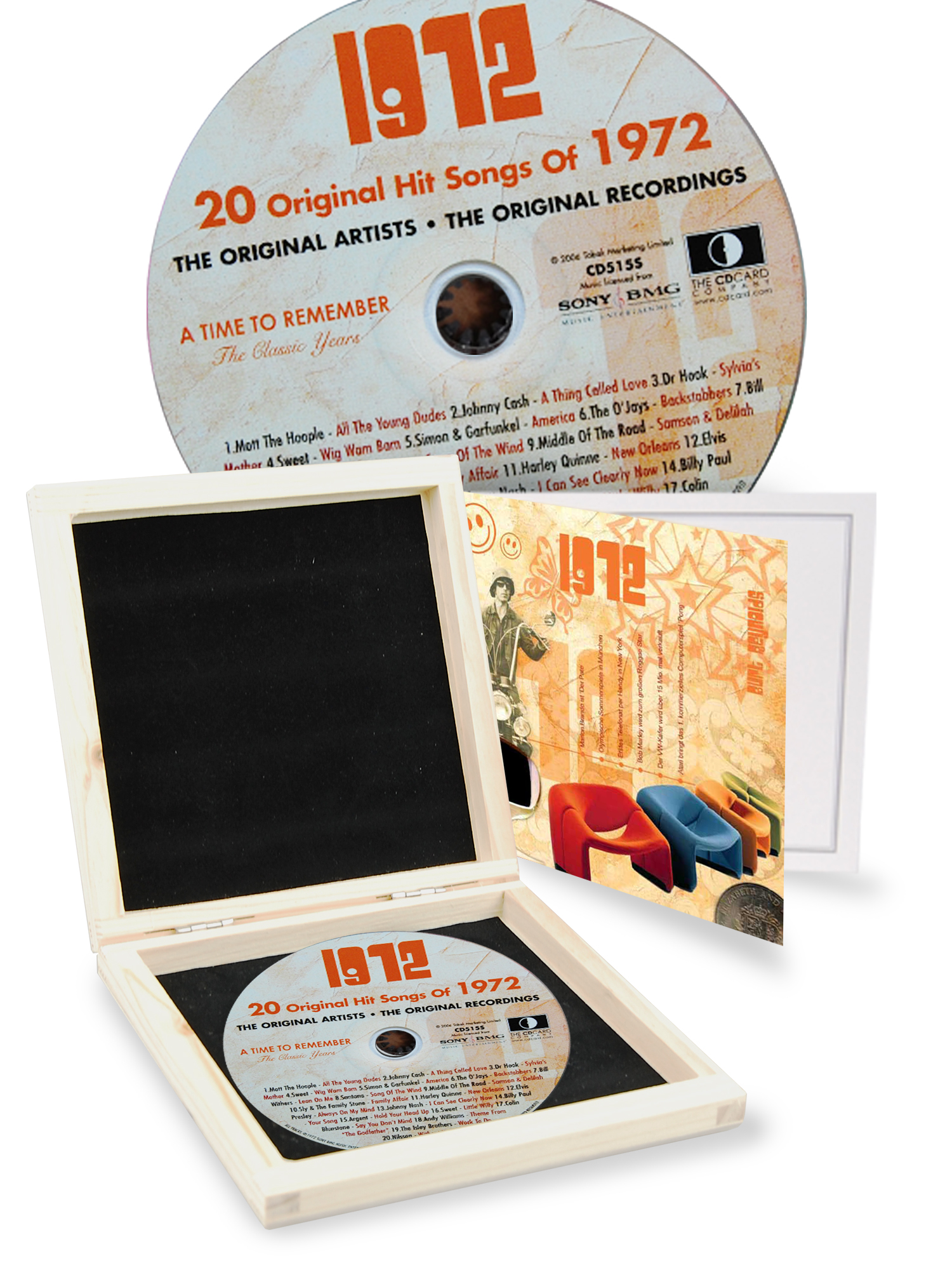 CD 1972 Musik-Hits in Luxusbox, auch mit Gravur!