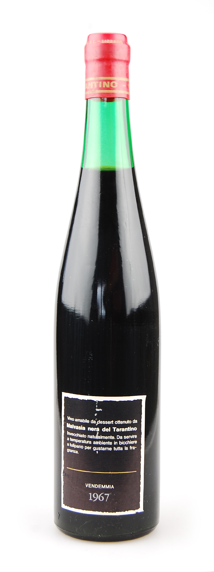 Der Malvasia del Tarantino ist ein ganz besonderer Edelwein Sardiniens. Er hat ein ausgeprägtes Bouquet und ist bekannt für seinen besonderen Nachgeschmack gerösteter Mandeln. Er zeichnet sich vor allem durch die sehr gute Lagerfähigkeit aus, vor allem wenn er wie dieser Wein aus dem Jahr 1967 ein Malvasia Vino amabile da dessert ist, ein Rotwein mit einem besonders hohen Alkoholgehalt zwischen 15 bis 18%. Unser besonderer Geschenk-Tipp, jetzt schnell zugreifen, nur noch bedingt verfügbar!